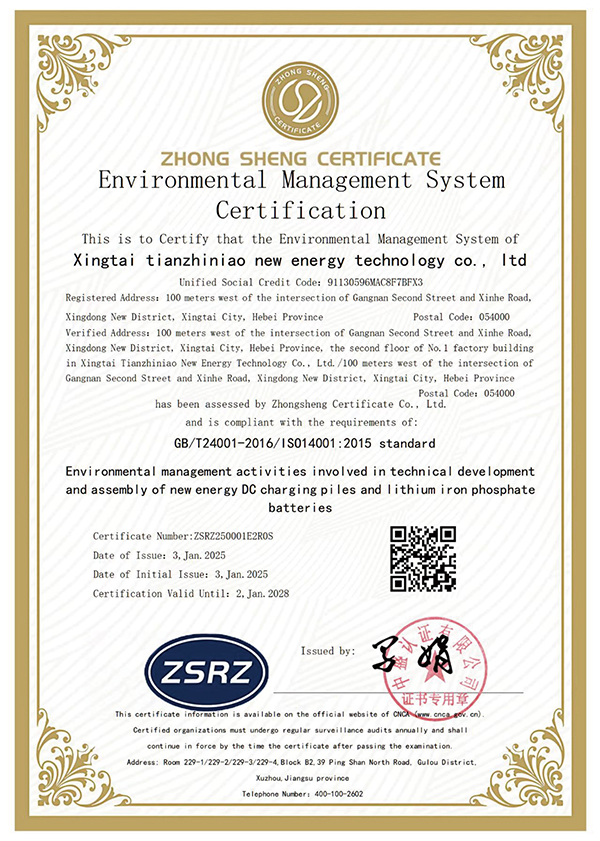 環(huán)境管理體系認證證書